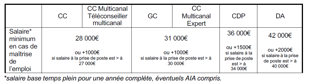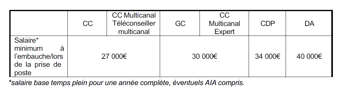 A compter de l’entrée en vigueur du présent accord, les salaires minimums à l’embauche et lors de la prise de poste des emplois listés ci-dessus sont revalorisés comme suit :