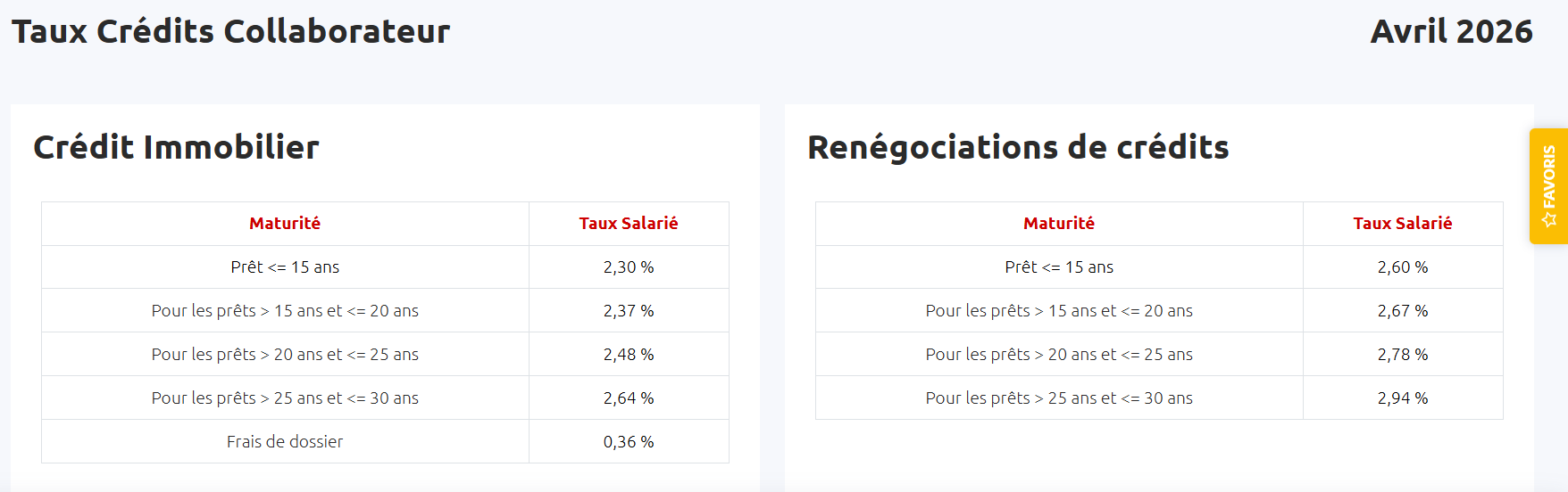 Tous les mois, vos élus SNE-CGC mettront à jour les conditions des taux de prêts aux salariés de la CEBFC 😊👍